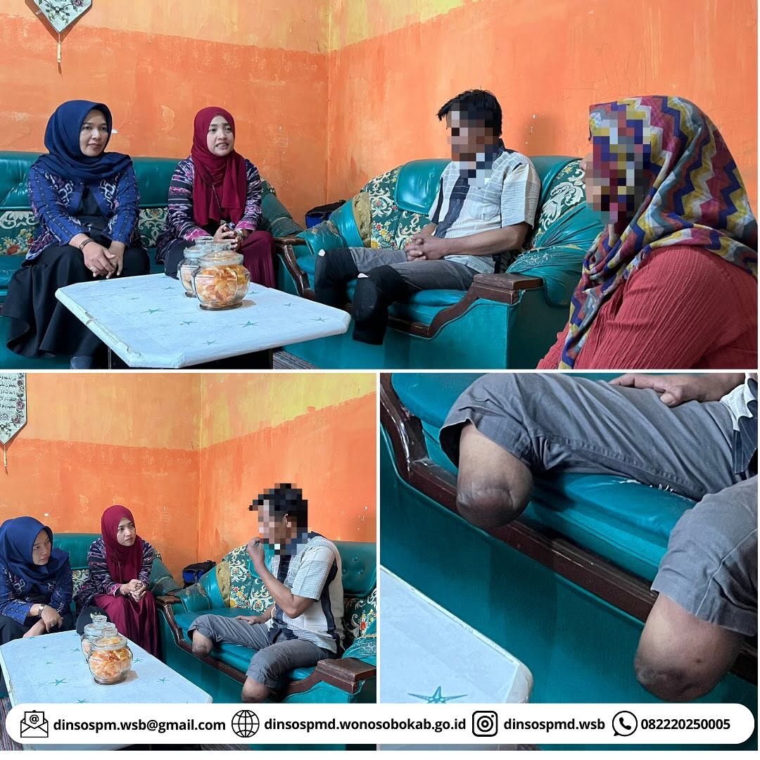 Tim Dinas SosialPMD bersama Ibu Camat Kecamatan Kalikajar berkunjung ke penyandang disabilitas di Desa Kembaran Kecamatan Kalikajar an Bapak S.