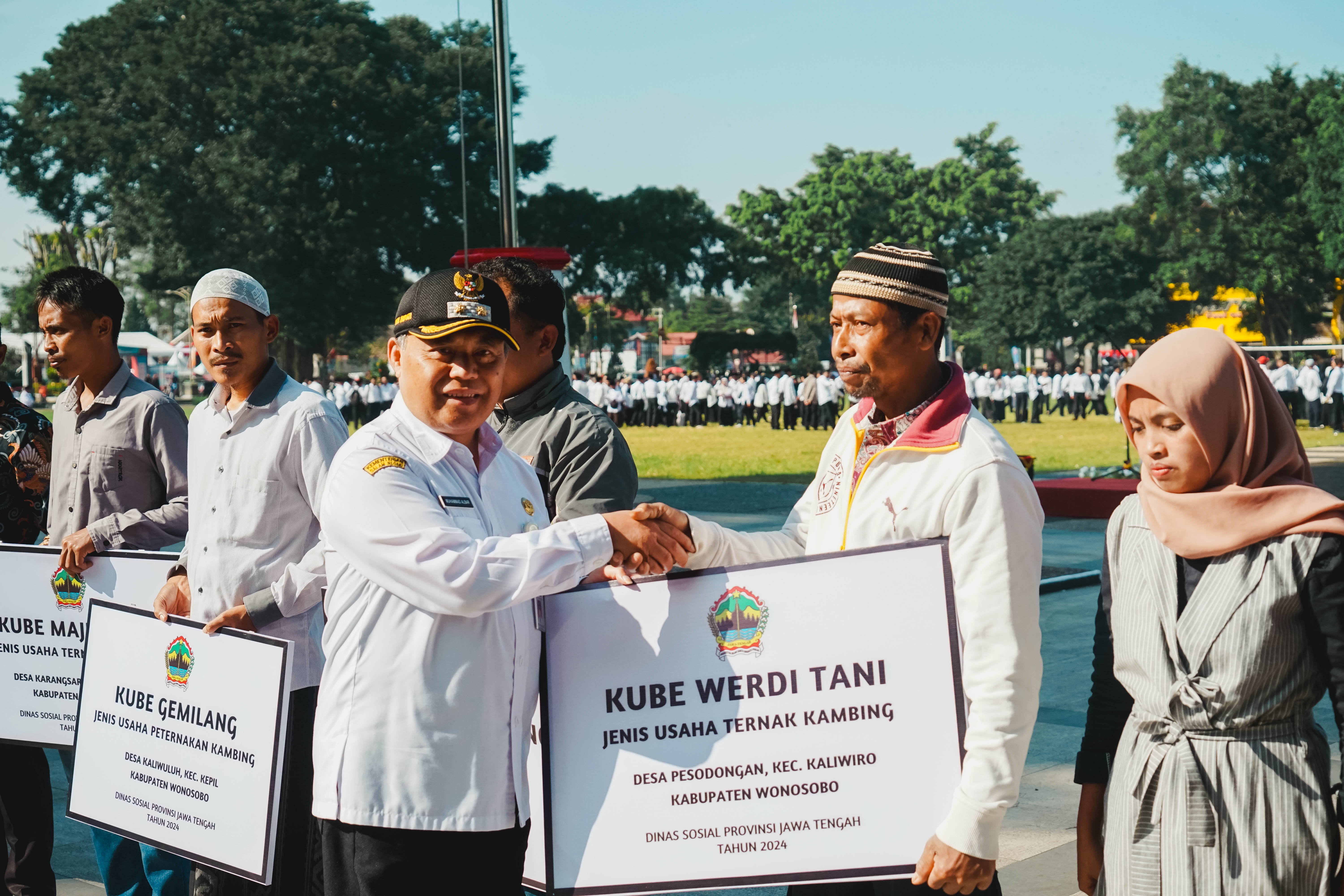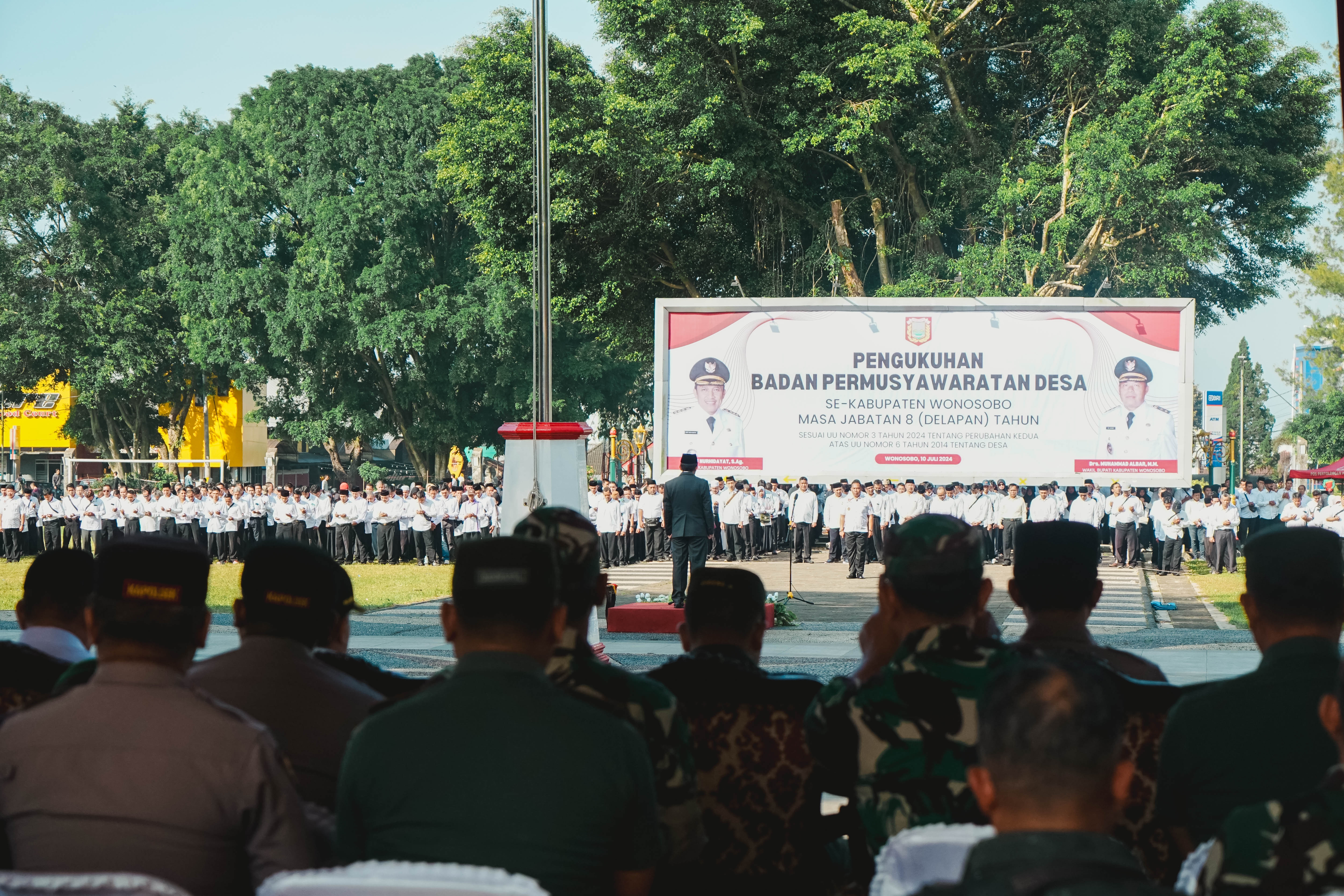 Pelaksanaan kegiatan tersebut. Diawali dengan Apel Bersama yg diikuti sekitar 1500 org terdiri dari unsur Forkompinda,Forkompinca, Kades seluruh Kabupaten Wonosobo, BPD ,PKH,TKSK sekabupaten Wonosobo. Dilanjutkan dengan acara pengukuhan dan penyerahan SK perpanjangan masa jabatan BPD, penyerahan bantuan sosial Kelompok Usaha Bersama dan penyerahan Santunan korban meninggal akibat bencana alam