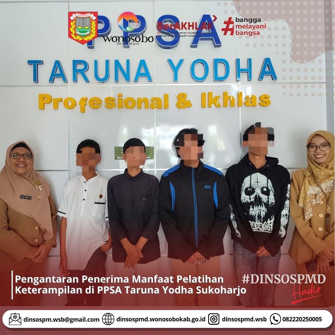 Dinsospmd Wonosobo memberangkatkan 4 anak penerima manfaat yang mendaftarkan diri untuk mengikuti pelatihan keterampilan di Panti Pelayanan Sosial Anak Taruna Yodha Sukoharjo. Mereka berasal dari Kecamatan Mojotengah, Selomerto, Kalikajar dan Kejajar. Pelatihan tersebut akan berlangsung selama 6 bulan.