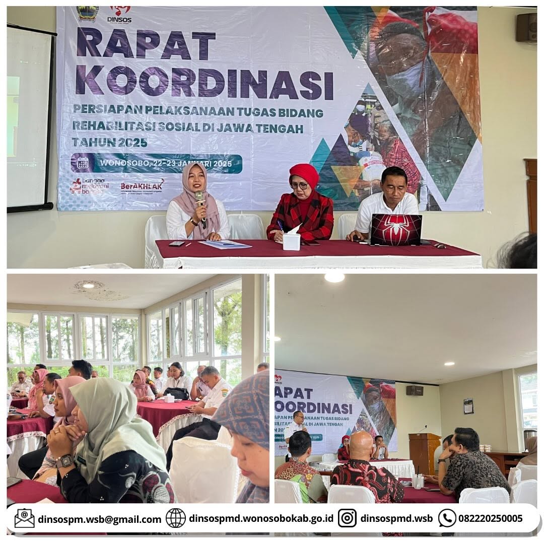 Hari Rabu-Kamis tanggal 22-23 Januari 2025 dilaksanakan rapat koordinasi bidang rehabilitasi sosial di Jawa Tengah Tahun 2025 yang bertempat di Tambi Tea Resort, Wonosobo. Kegiatan ini dihadiri oleh Dinas Sosial Provinsi Jawa Tengah, Kabid Rehsos Kab/Kota se Jawa Tengah dengan narasumber dari ST Terpadu Kartini Temanggung, Akademisi UNDIP dan Lembaga SDM Corien Center.