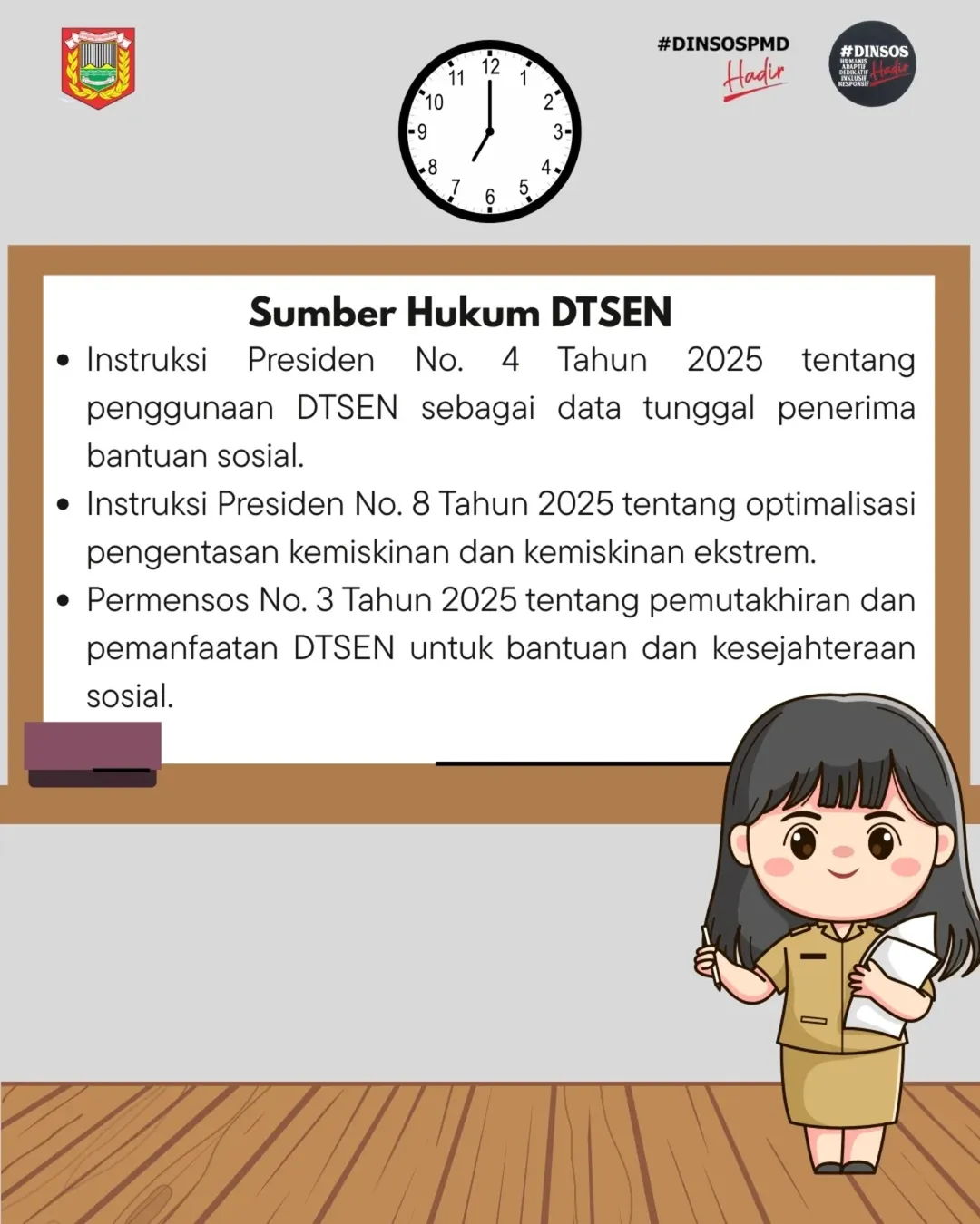 Dengan diterbitkannya Instruksi Presiden Nomor 4 Tahun 2025, DTSEN (Data Tunggal Sosial dan Ekonomi Nasional) digunakan sebagai data acuan penerima bantuan sosial. Bagi Sobat SosialPMD yang penasaran tentang apa itu DTSEN dan Desil, Yuk kita simak pada penjelasannya dengan cara klik gambar pada postingan