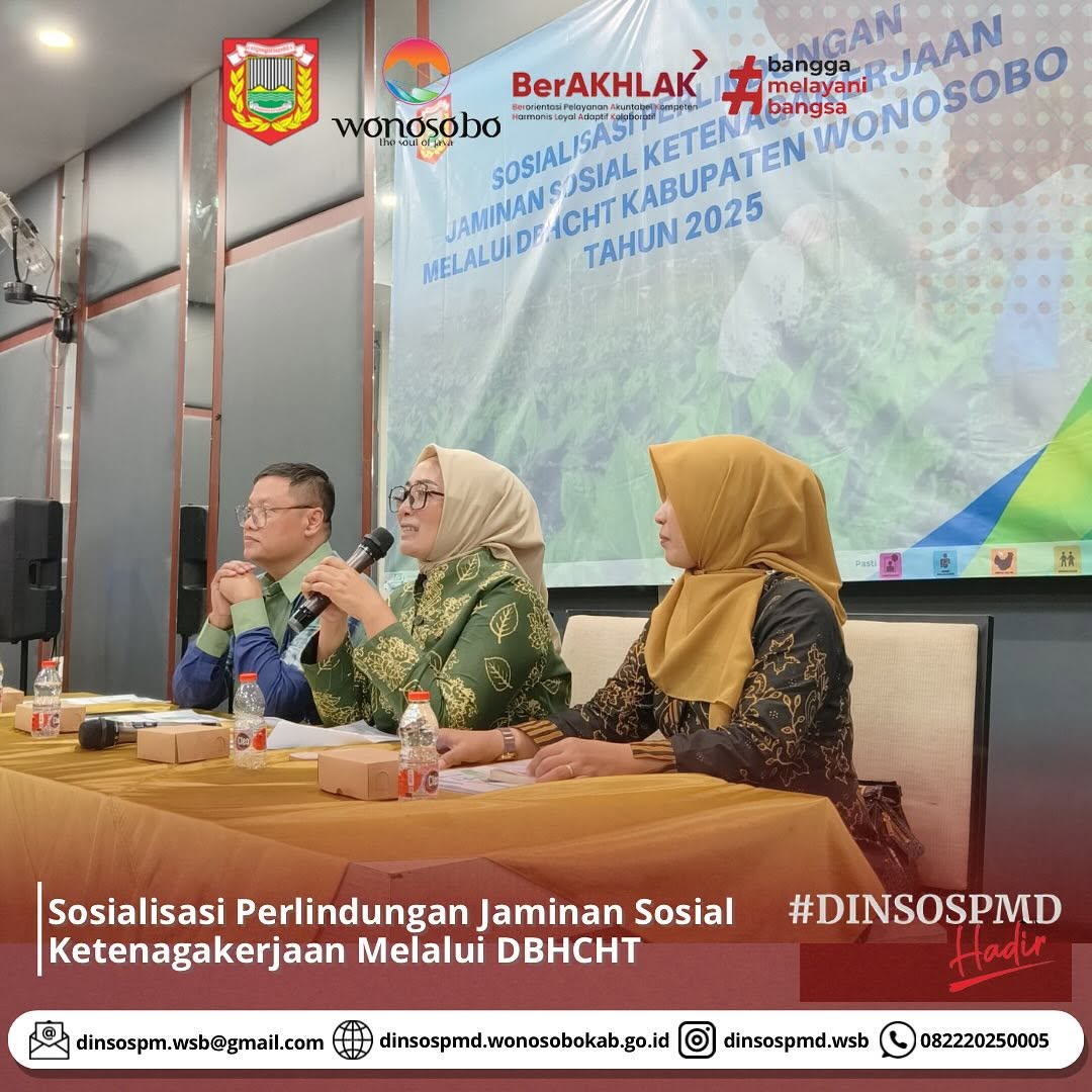 Hari Kamis, 26 Februari 2025 telah dilaksanakan sosialisasi terkait jaminan sosial ketenagakerjaan melalui Dana Bagi Hasil Cukai Hasil Tembakau (DBHCHT). Kegiatan tersebut dihadiri oleh Kasie Kesos, Korcam Kades dan Sekdes se Kabupaten Wonosobo, APTI dan perusahaan rokok yang ada di Wonosobo.