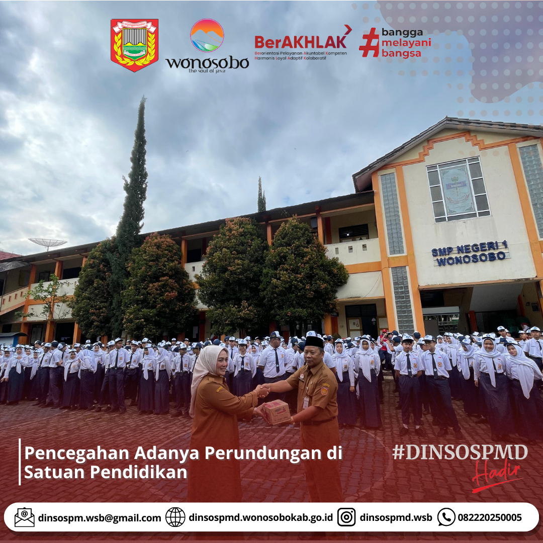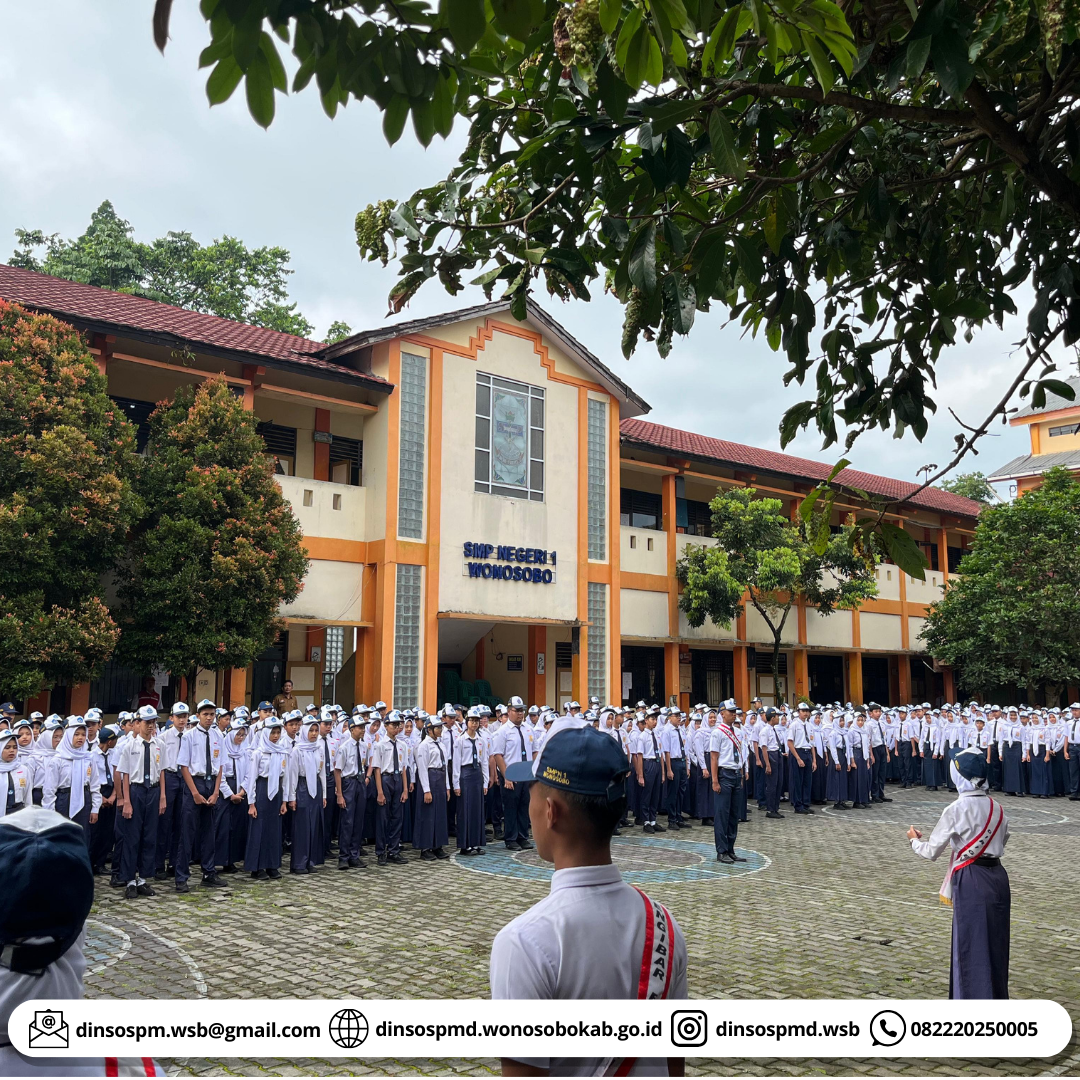 Hari ini, Senin 6 Januari 2025 Kepala Dinas Sosial PMD Kabupaten Wonosobo berkenan menjadi pembina upacara di SMP Negeri 1 Wonosobo dalam rangka upaya pencegahan adanya perundungan di satuan pendidikan.